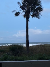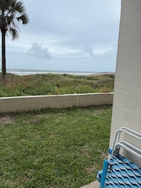 This condo is small--only 400 square feet. We don't want you to be caught off guard by the size. We have, however, maximized the layout to make it feel roomy. It is on the first floor and conveniently located in the middle of the complex giving it great access to the stairs, handicapped ramp, parking, pool, and beach access. The best part about being on the first floor is the patio. You still have an ocean view, but you don't have to look through the railing when you're on our patio, and it feels private--as if you're the only ones there. Even though it's on the first floor, you can feel safe because the lower level of the complex is fenced in.
