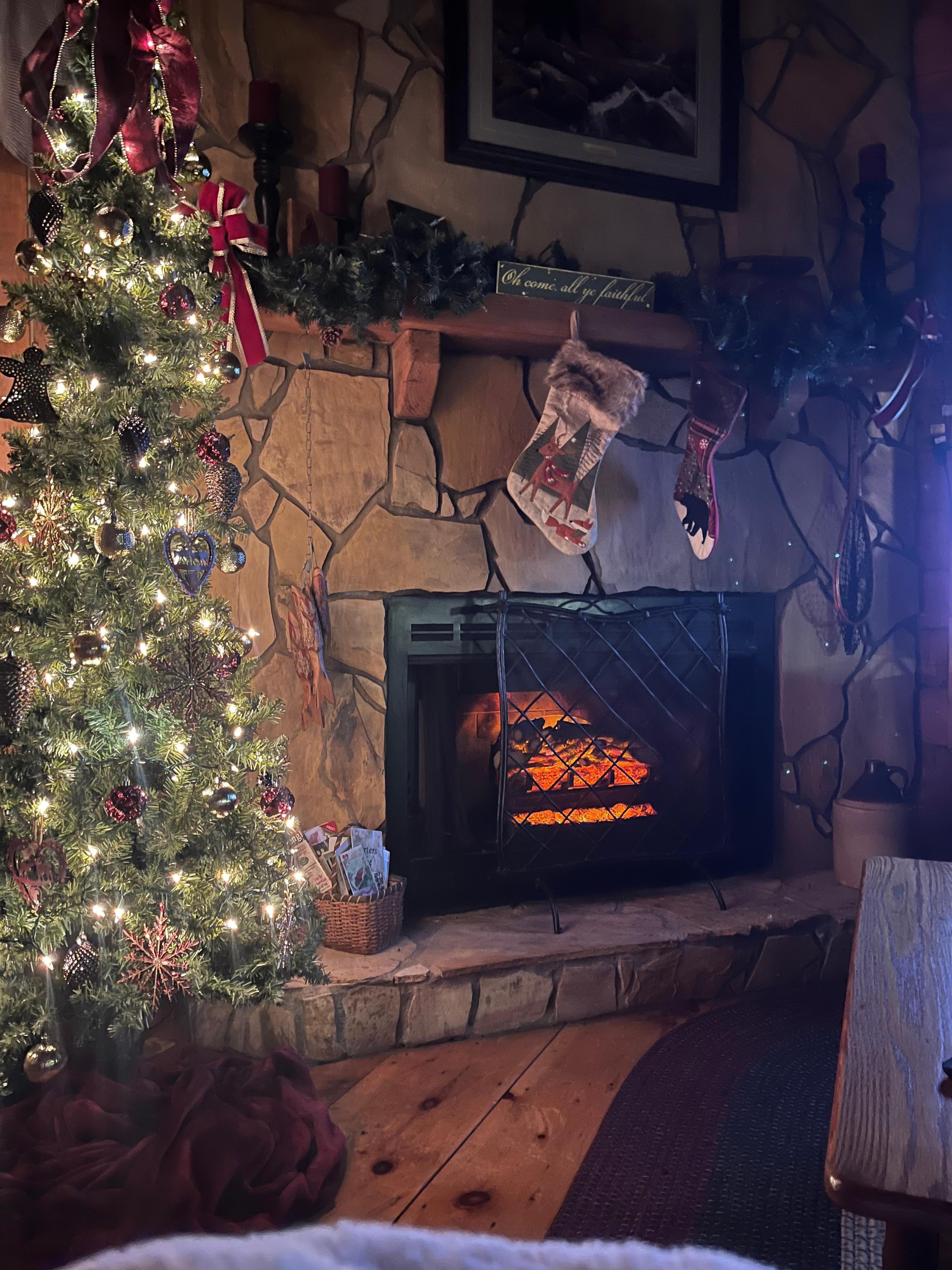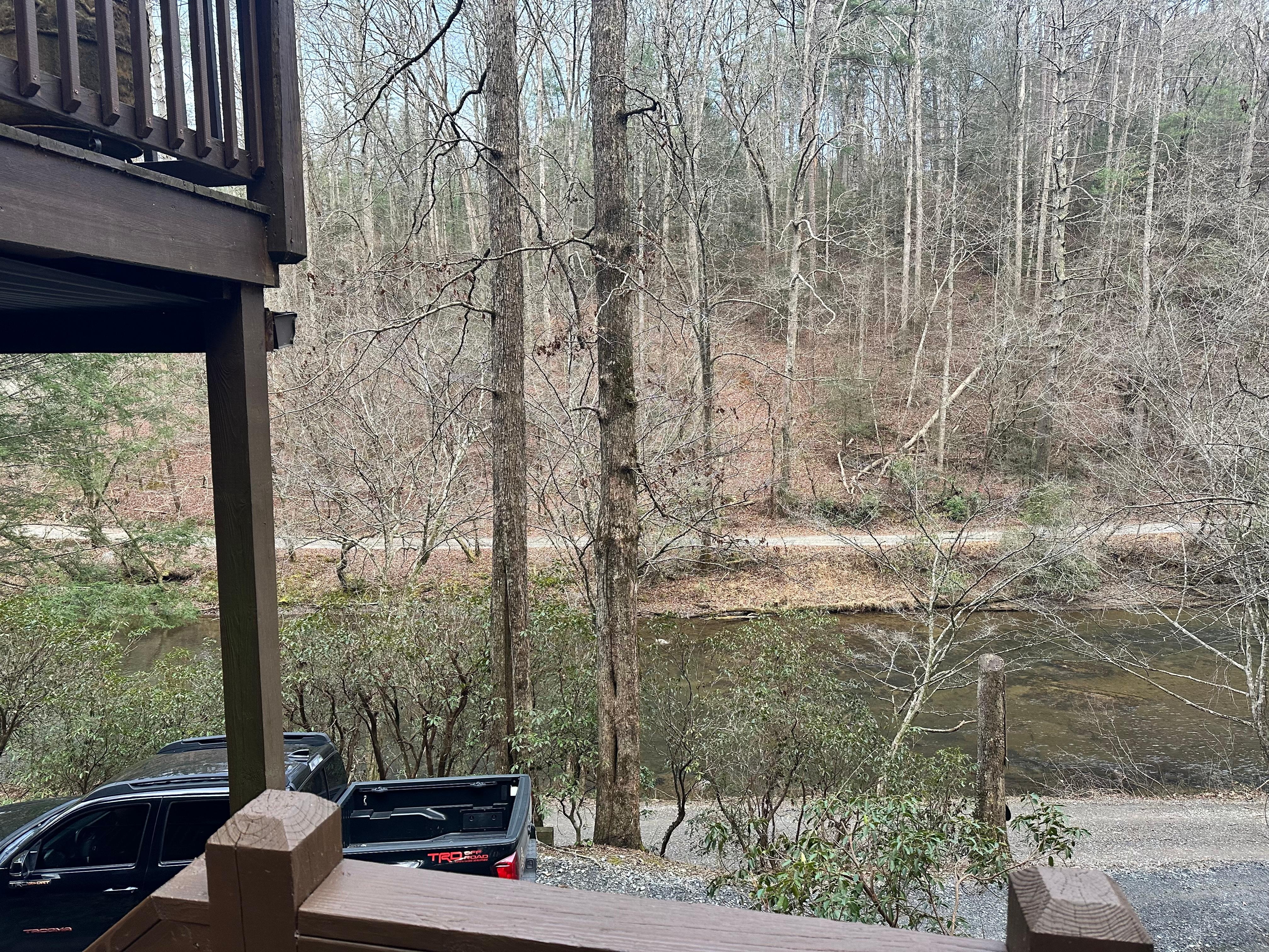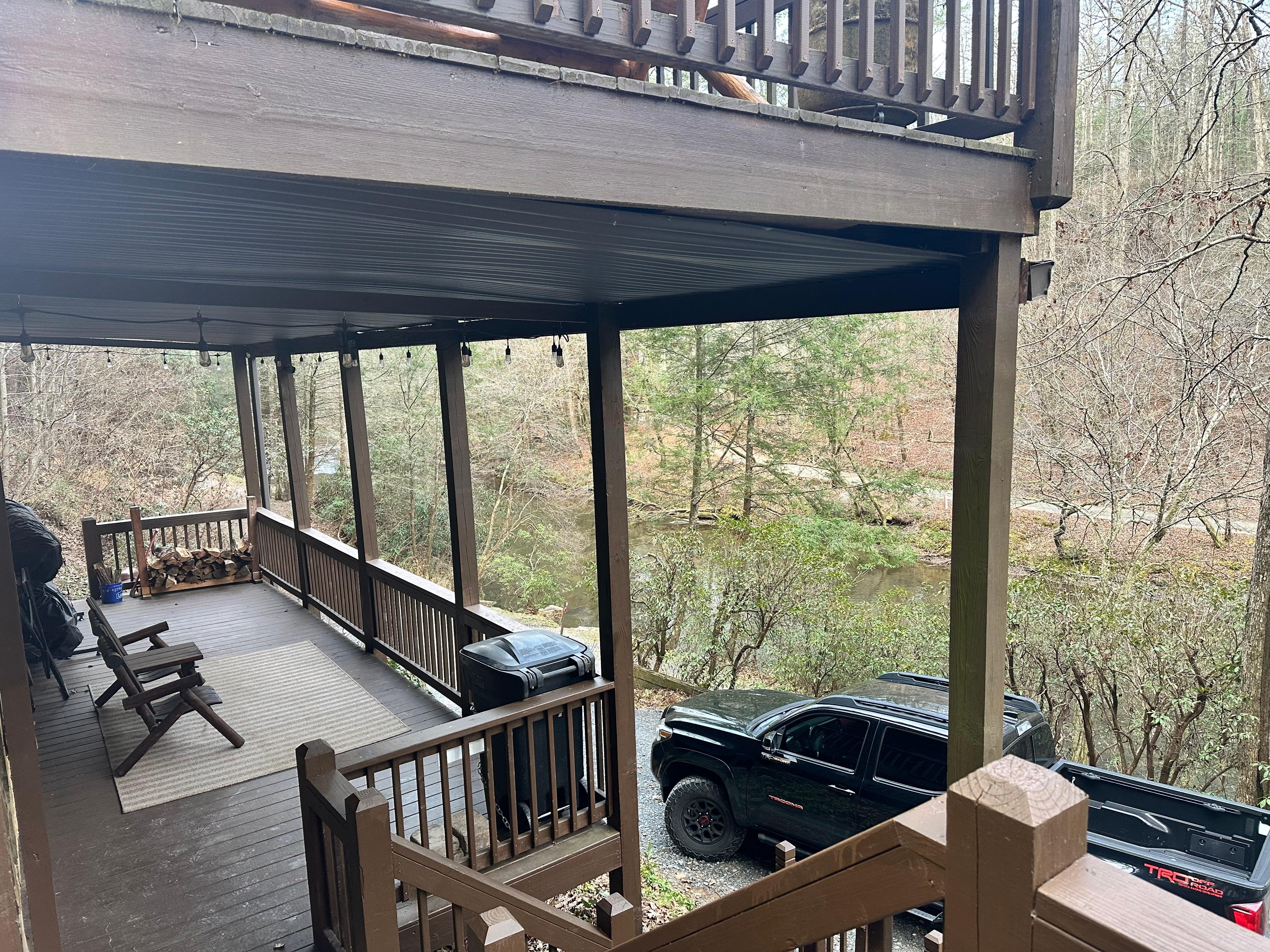 Wake to the sounds of a gentle rain falling on the metal roof or birds chirping outside the window. Enjoy the start of the day with a cup of coffee on the deck listening to the rushing waters of the creek as the sun begins to shine. Take off the chill by sitting by the soft porch lights and wood burning stove---which is perfect for roasting marshmallows at night.