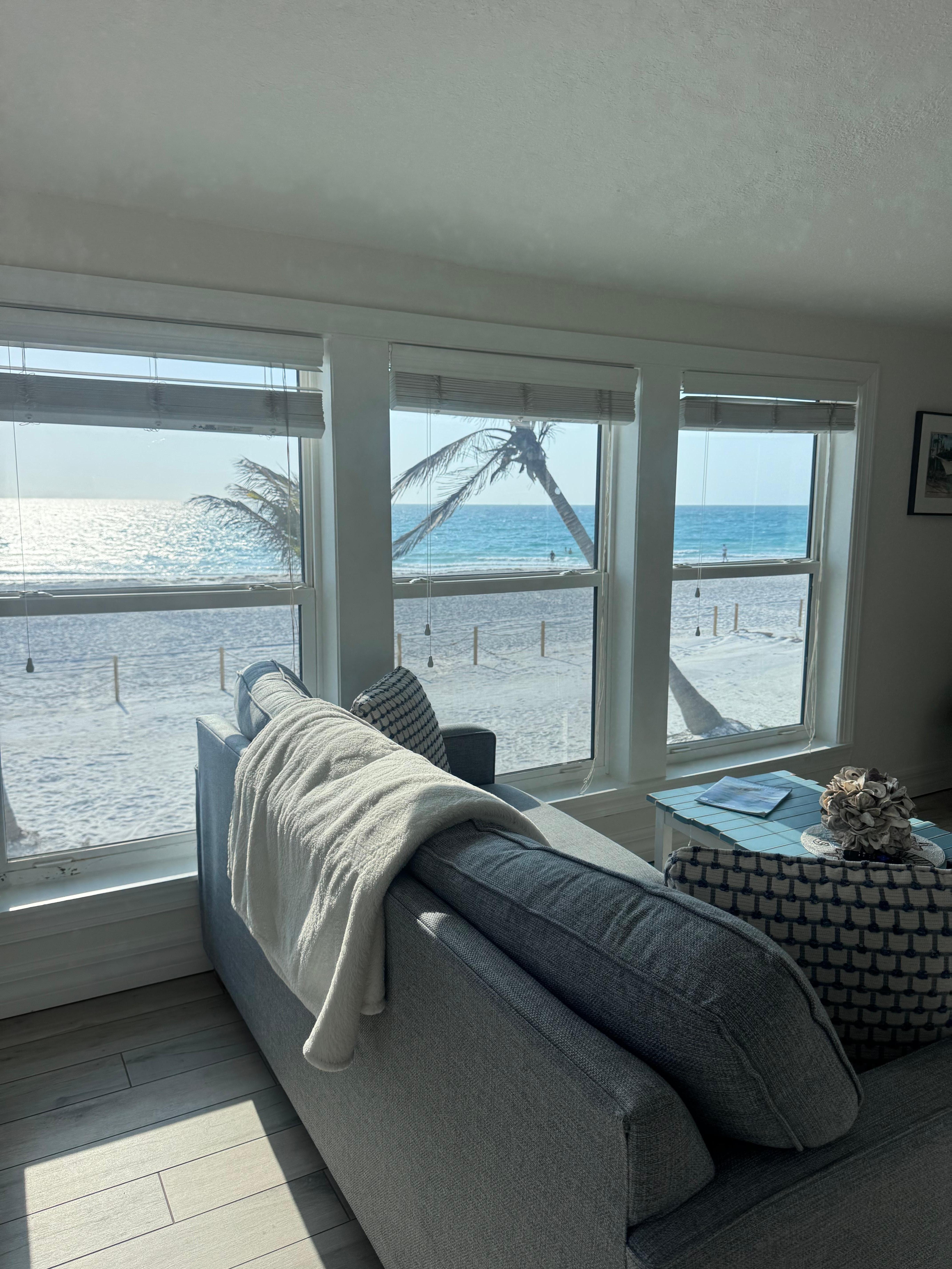 This unit offers a full kitchen, a full bath 1 bedroom and a pull out sofa that sleeps 2 and an additional sofa that sleeps one. Beach towels are provided. There is limited assigned on-site parking , one small car will fit on-site. Additional parking off site is available withing walking distance if needed for multiple or large cars. Please ask in advance and we will be happy to accommodate you.
