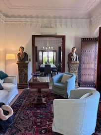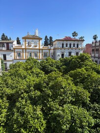 We were 9 adults and 2 children aged 3 and 5, and spent six nights at the house. This was an ideal property for enjoying a family Christmas holiday. The house has extraordinary character and a comfortable living room and dining room overlooking a beautiful square. It is steps from the cathedral and the Real Alcazar, in a pedestrian neighborhood with great little restaurants and shops. The only thing to keep in mind is that cars cannot reach the house, so guests have to be willing to walk a couple of minutes from the nearest car access at the Alcazar. Also, two bedrooms are up a stone spiral staircase - great fun, but not for people with mobility problems. On the practical side, there is a functional kitchen and the bathrooms have plenty of hot water although shower temperature can sometimes vary suddenly, necessitating adjustments. Elena, the host, is extremely nice and helpful about everything. She helped us find an excellent cook, Conchita Valdenebro, who delivered food to the house for meals in. We could not have had a better time! Highly recommended!