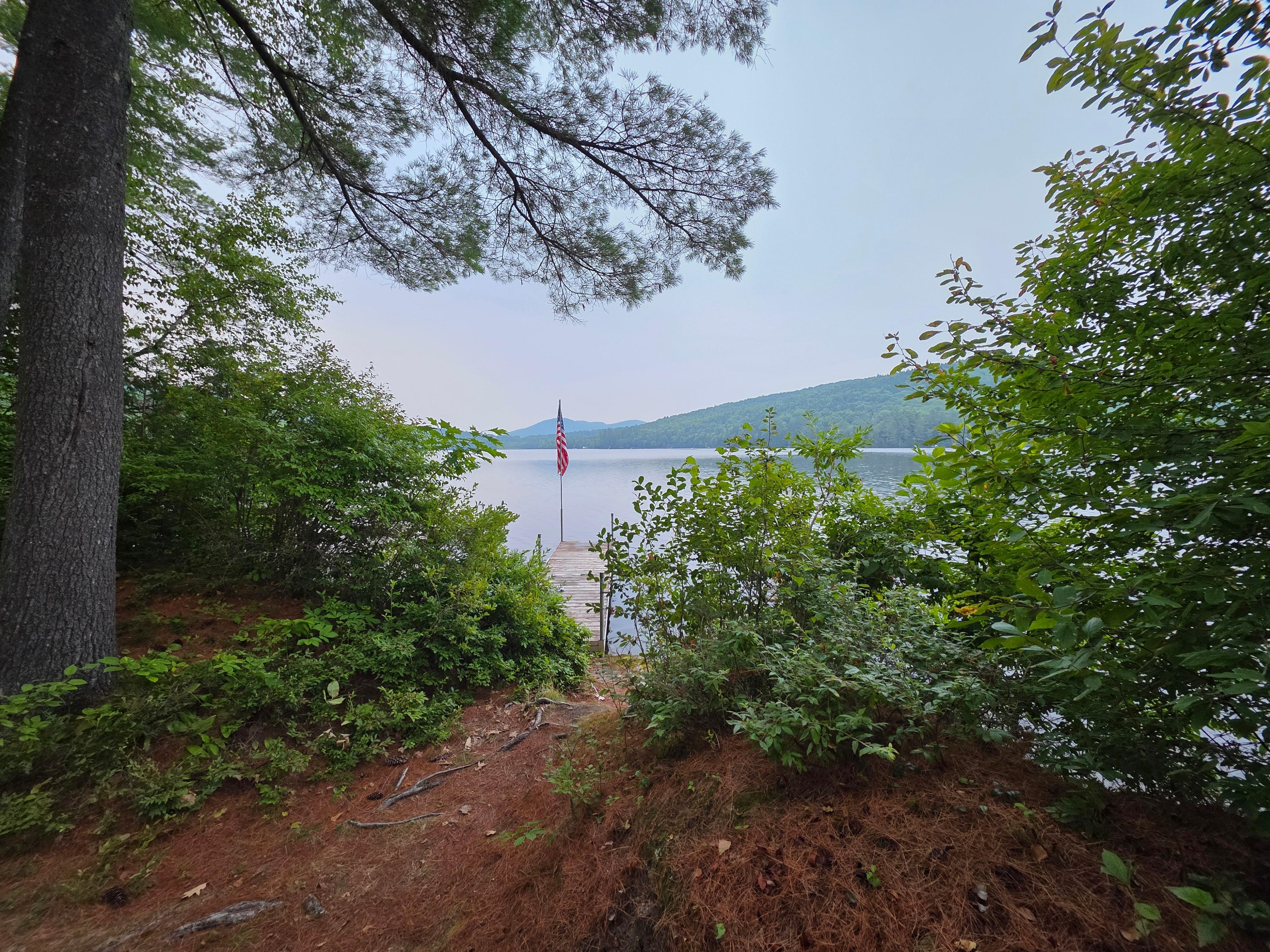 The Lake House sits on a private peninsula with 270 degree water views ensuring ultimate privacy. Your arrival down a long gravel drive, and past our only neighbor will bring you to this pristine setting at water's edge. The house is a contemporary cedar shingled post and beam home, and has been totally renovated. Granite walls, steps and landscaping surround the bluestone patio walkway that leads up to the front entry of the two level home. The yard is very private with a large lawn area towards the lake. There is a sandy swimming area with a shallow entry to the water off the rock ledge and there are wonderful mountain views of Buck's Ledge to the east. Sit at the end of the dock and dangle your feet in the water, or throw in a fishing line. You can use our canoe and kayak (included in your rental) to paddle the perimeter of the lake or go out to the swimming island and dive from the ledges.