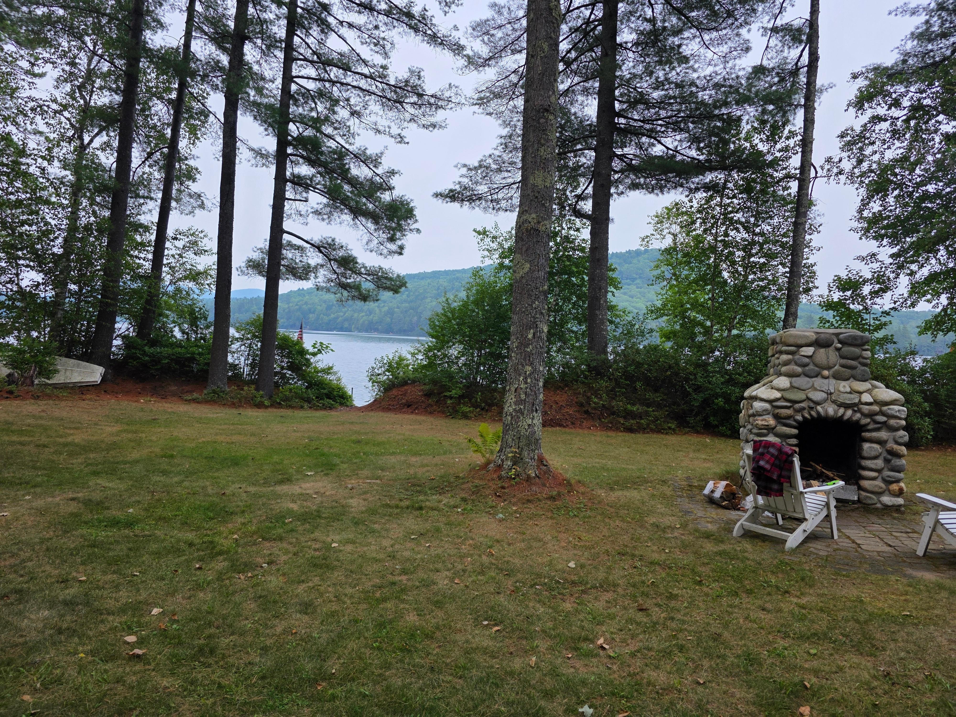 Relax on the upper covered deck or on the lower level patio area. There is a dining area on both levels, as well as comfortable seating areas and a Weber gas grill on the lower level. You will love the large outdoor stone fireplace for an evening camp fire during the summer. Just bring your s'mores and settle into one of the Adirondack chairs. Listen to the loons call and watch for the bald eagle. If you are lucky, he will land in one of the large pines on the property for a really close look.