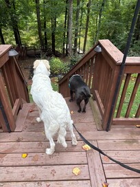 Supervision on stairs to lake and deckis essential