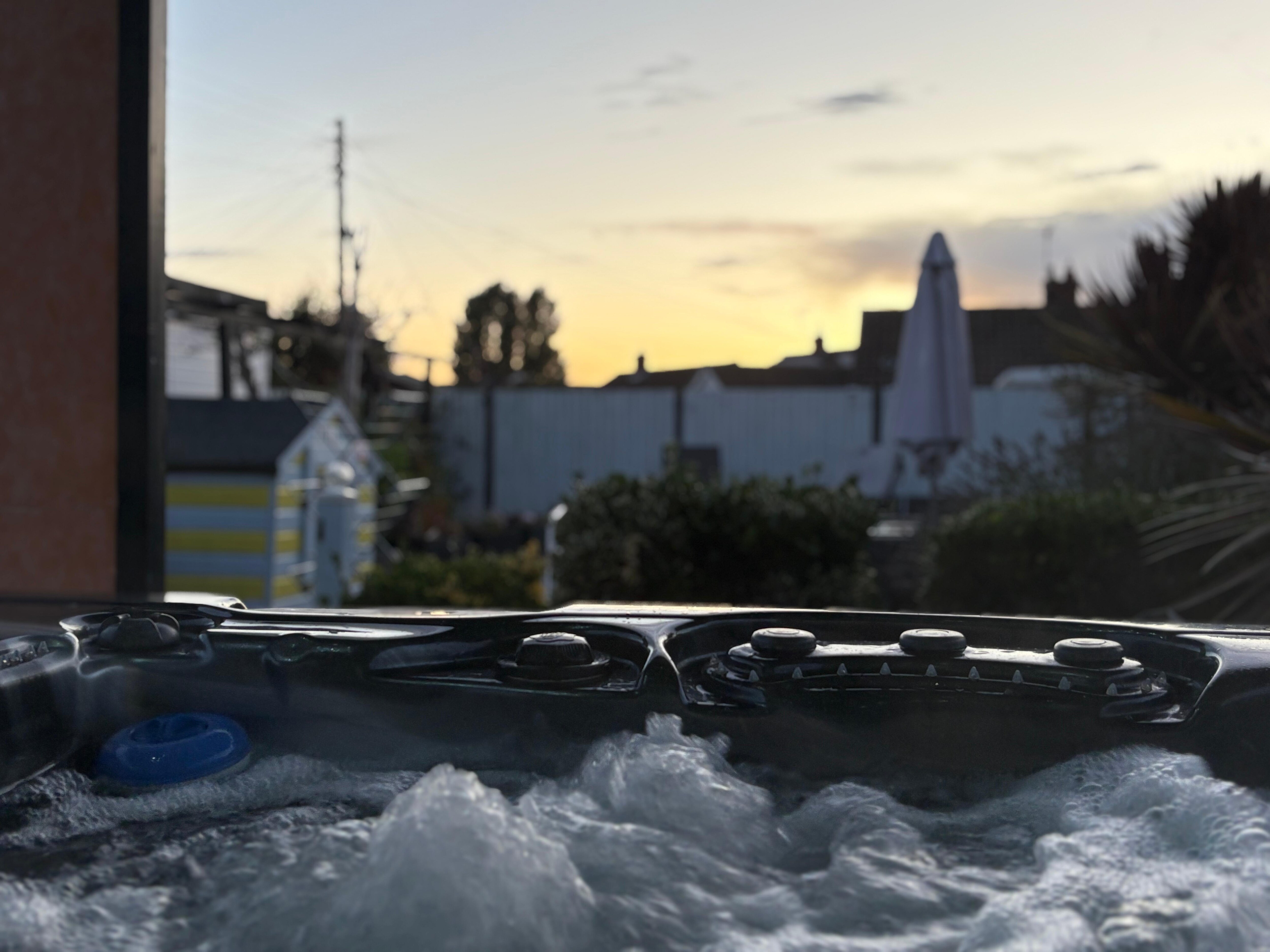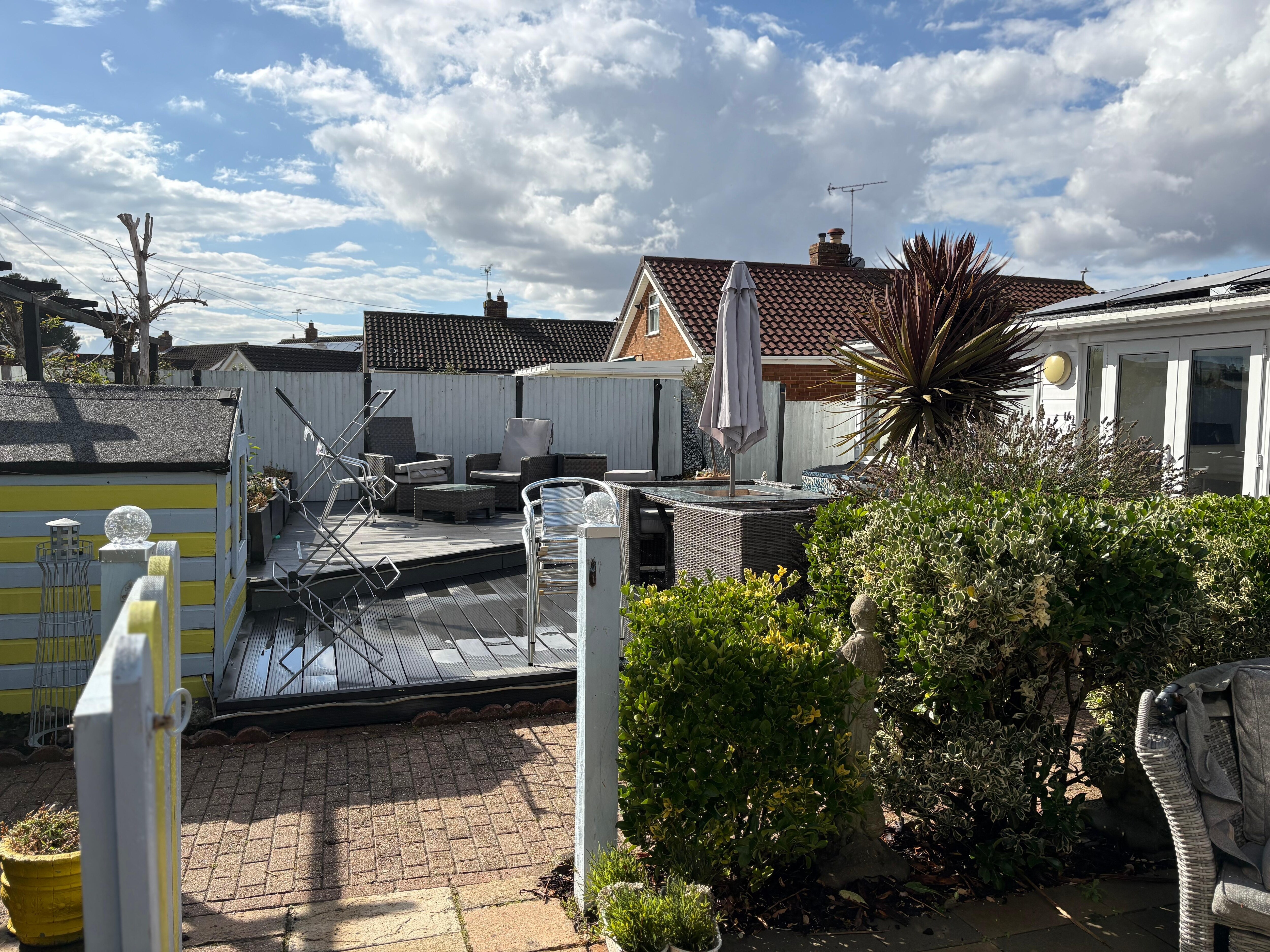 The decked landscaped garden separates the cabin from the main house and is for guests to use and has furniture to relax in and a hammock. There is a 6-person hot tub an outdoor hot shower and a BBQ kitchen. There is a playhouse and trikes for children to enjoy.