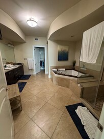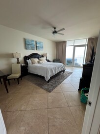 Usted se sentirá como la realeza cuando entras en la suite principal, que alberga una cama de rey rey de madera con ropa de cama de lujo y colchón de la parte superior de la línea, una zona de asientos con una silla moderna y acogedora micro suede, una televisión LCD y balcón frente a la playa acceso. El baño de glamour adjunto cuenta con una enorme bañera de hidromasaje, cristal separado y ducha de azulejos, su-e-ella vanidades e incluso una pantalla plana de pared! El segundo dormitorio también ofrece una cama king size y TV LCD, y el tercer dormitorio cuenta con una cama king y TV LCD. Hay dos sofás-cama queen en el salón, lo que permite el condominio para dormir hasta 10 cómodamente! Hay baños privados unidos a los dormitorios adicionales, además de un medio ba��o para los huéspedes.