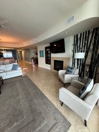 Si estás buscando lujo, entonces no busques más! Esta unidad única ofrece más de 2400 pies cuadrados de espacio de vida, con un concepto de concepto abierto y amplias ventanas de cristal que abarca desde el suelo hasta el máximo de los altos techos de 10 pies. La zona de estar es verter con luz natural y se siente como si la playa está en cascada justo en la unidad! Adornado con una paleta de colores brillantes y enérgicos y decoración contemporánea, esta unidad exquisitamente decorada cuenta con un sofá en forma de L lujoso, 2 sillas laterales eclécticas impresas y 2 sillas de cuero, obras de arte personalizado moderno, un enorme televisor de pared HD e incluso una chimenea! La cocina está segura de impresionar incluso al chef más experimentado, ofreciendo encimeras de granito, una cocina de gas superior, electrodomésticos de acero inoxidable de las mejores marcas, incluyendo KitchenAid, Wolf y Sub-Zero, una barra de desayuno con capacidad para cuatro, y mucho más! El comedor cuenta con capacidad para 6 y un bar con máquina de hielo separada y refrigerador de vino, perfecto para mezclar su cóctel favorito y entretener a los huéspedes!