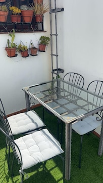 Please note that stairs must be climbed to the second floor. In the apartment on the ground floor there is a bedroom with a single bed, the kitchen and the bathroom. Going up to the first floor is the main room and a beautiful terrace with views of the also beautiful Feria Street.