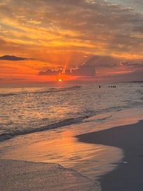 Beach life fun is all around us! Okaloosa Island has everything you need for a relaxing fun filled vacation. Dolphin shows at the Gulfarium, a walk on the boardwalk, or fishing off the pier are five minutes away. Golf, mini golf, water sports, parasailing, jet ski rental, dolphin cruises, etc., are all close by. Outlet shops at Silver Sands are just a short drive, and antique shops in downtown Fort Walton are there for leisure shopping. We are away from the traffic and crowds of busy Destin, but only 6 miles from all the activity Destin has to offer as well. Many delicious local seafood and steak restaurants are available. Visit emeraldcoastfl .com for more information on upcoming events, beach fun activities, restaurants, etc., in the area.