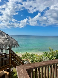 Gran patio con vista al Océano Pacífico con playa de arena aislada al sur de la Bahía de Waimea. Studio es como nuevo