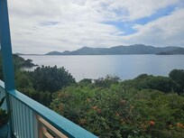 Discover your own private paradise with direct beach access at this East End two bedroom two bath Bay View Villa. Nestled above Hanson Bay, you can enjoy the beautiful sunsets on the expansive deck with panoramic views of beautiful Coral Bay, Ram’s Head and the Caribbean beyond. The lighted deck has a covered area with table and chairs and two open sections of deck with lounge chairs for sun bathing, relaxing and listening to the gentle surf.