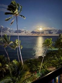 Great for a romantic getaway, this Beautiful One Bedroom Beachfront End Unit does nothing but amaze anyone who stays here. Wake up early, walk out onto the wrap around lanai and see in front of you the dramatic pinks, oranges and yellows of the sunrise. Next stroll down to the secluded beach, take a jump in the cool, calm waters of the Pacific Ocean, then lay out in the soft white sand and soak in the brilliant Hawaiian Sun.