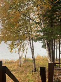 It has an open concept kitchen, dining, living room which lead to the sun room and large deck overlooking the woods and lake. Head to the rocky shore (There are steps down to the shore about 100 feet the left as you come down the steps from the deck) for skipping stones on the lake, a fire in the fire pit, an early morning sunrise over the lake or evening cocktails on the shoreline. We have left folding chairs for you to take down to the shore.