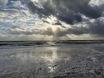The cottage has an open floor plan with the kitchen and living room together as one large space. The living room has plenty of seating with two couches and a cozy chaise lounge too. The completely renovated kitchen features quartz countertops, a huge island with seating, all new appliances and everything you will need to prepare, cook and enjoy meals while here at the beach. The cottage has a large flat screen TV for you to enjoy a wide variety of Comcast cable offerings. Both of the bedrooms have brand new queen mattresses and linens. Cavalier Cottage also has a twin size cot, which can be set up too. The completely remodeled bathroom features a tub with shower, all new towels and a large vanity with storage.