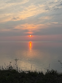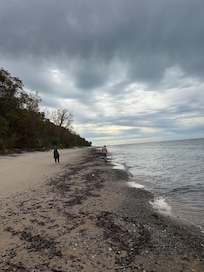 Absolutely gorgeous property on a bluff overlooking Lake Michigan. Three bedroom, two bathroom, ranch style home on almost 3 acres of beautiful property. There are stairs down to the 200 feet of private beach, approx 220, but they are not very steep. The stairs are shared with our other family home on the property to the north. There are tables, chairs, and umbrellas on the beach for guests to use. There is a deck with furniture and a grill, a fire pit in the yard, a hammock, and places to sit on the edge of the bluff. Come, relax, and see some of the most beautiful sunsets, starry skies, and whatever else nature can create.