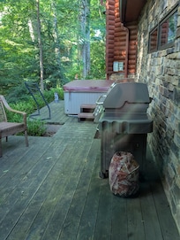 Kansi, josta on näkymät kauniille puutarhaan ja rotko, on aivan suuren huoneen vieressä liukulasiovioven kautta. Sviittiä ympäröivät puutarhat ovat iloisia. Rentoudu viileällä illalla tulipalolla oman tilan yksityisyydessä. Heitä pihvi kaasugrillille ja avaa pullo viiniä, jotta voit nauttia illallisen kotona.