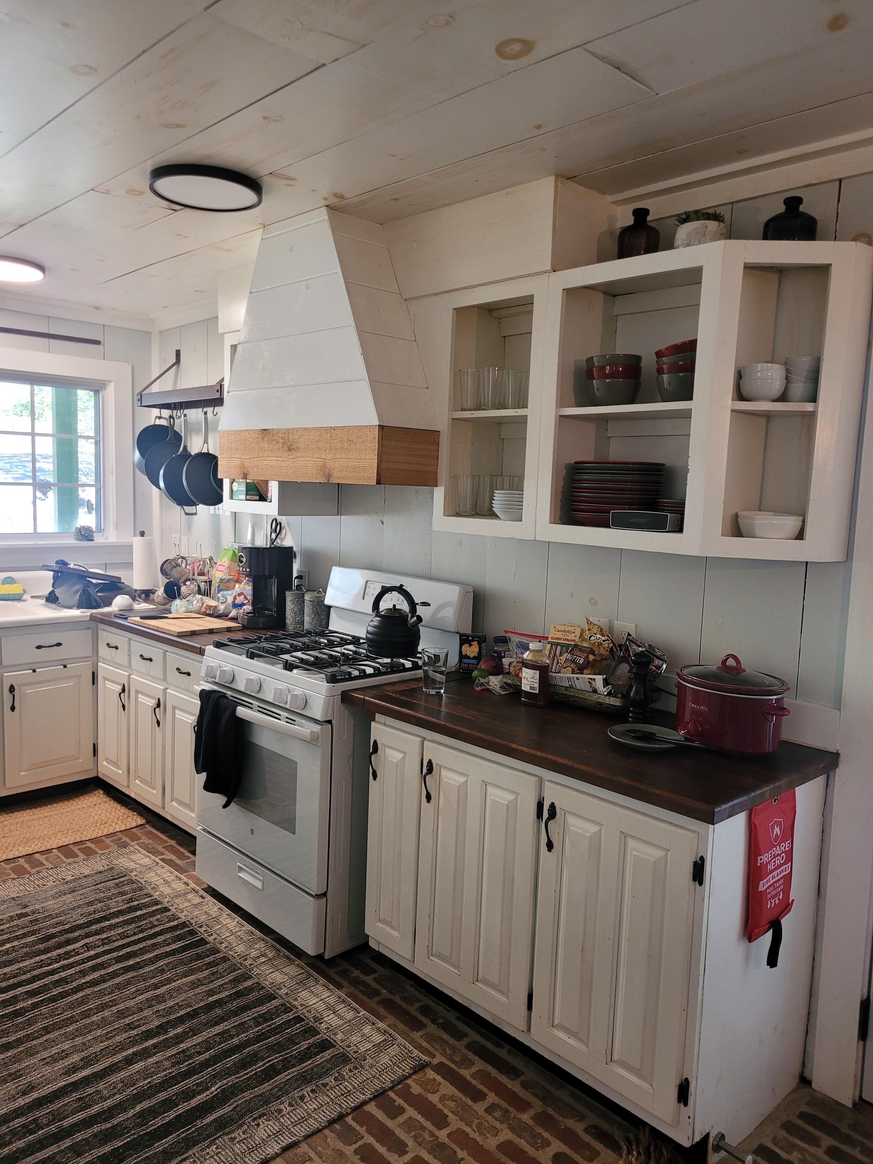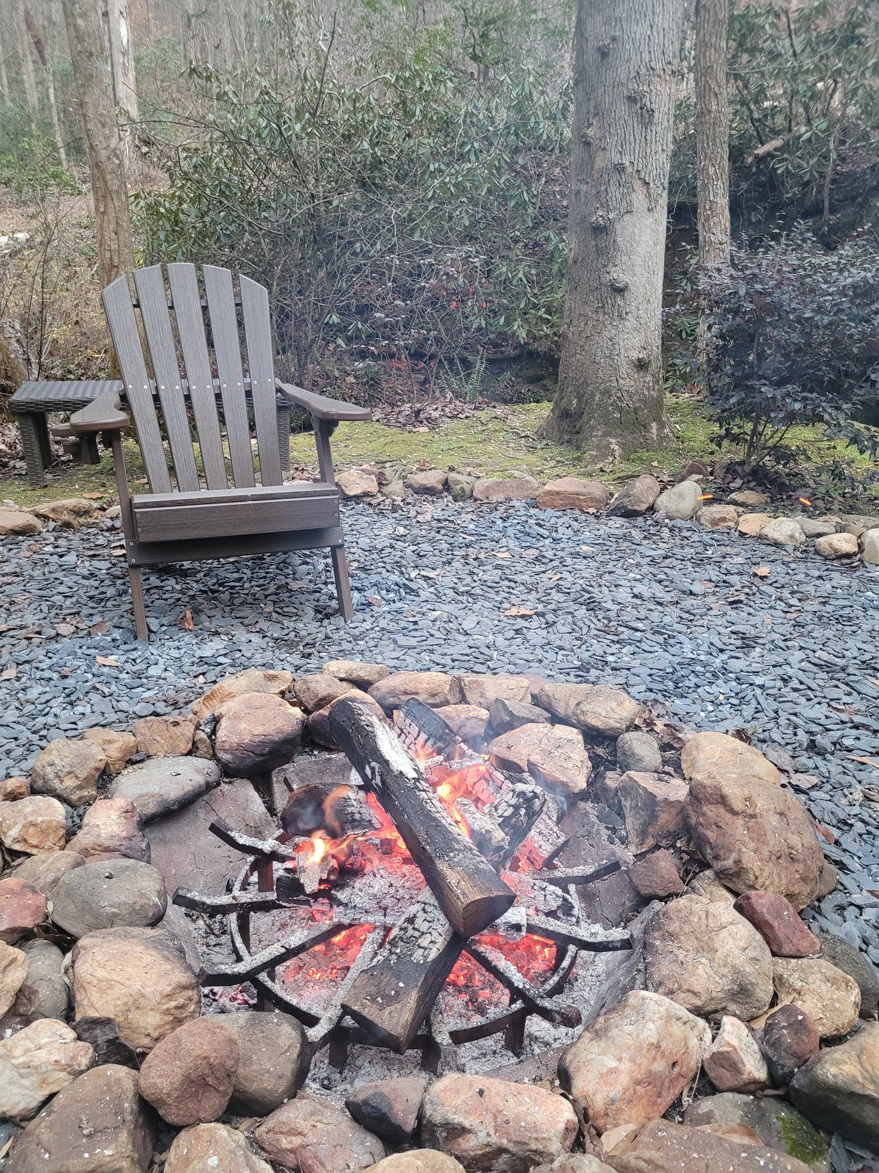 The modern meets vintage vibe is evident throughout. 2 bedrooms have vintage stain glass bordering french doors that open to a porch or deck. There’s hi-speed wifi available inside and out. Follow the flagstone path a few dozen feet and enjoy the firepit area with seating for 6 overlooking the rushing creek (or enjoy the creek from a second spot featuring an iron and wood bench). Sounds of the noisey, rushing creek can be heard from everywhere. For entertaining, other than porch sitting and firepit chilling, there are 3 flat screen TVs, an outdoor ping pong table, all weather, heavy duty cornhole set and a chest full of games. This house is perfect for a peaceful get-away and/or a fun-filled get-together.