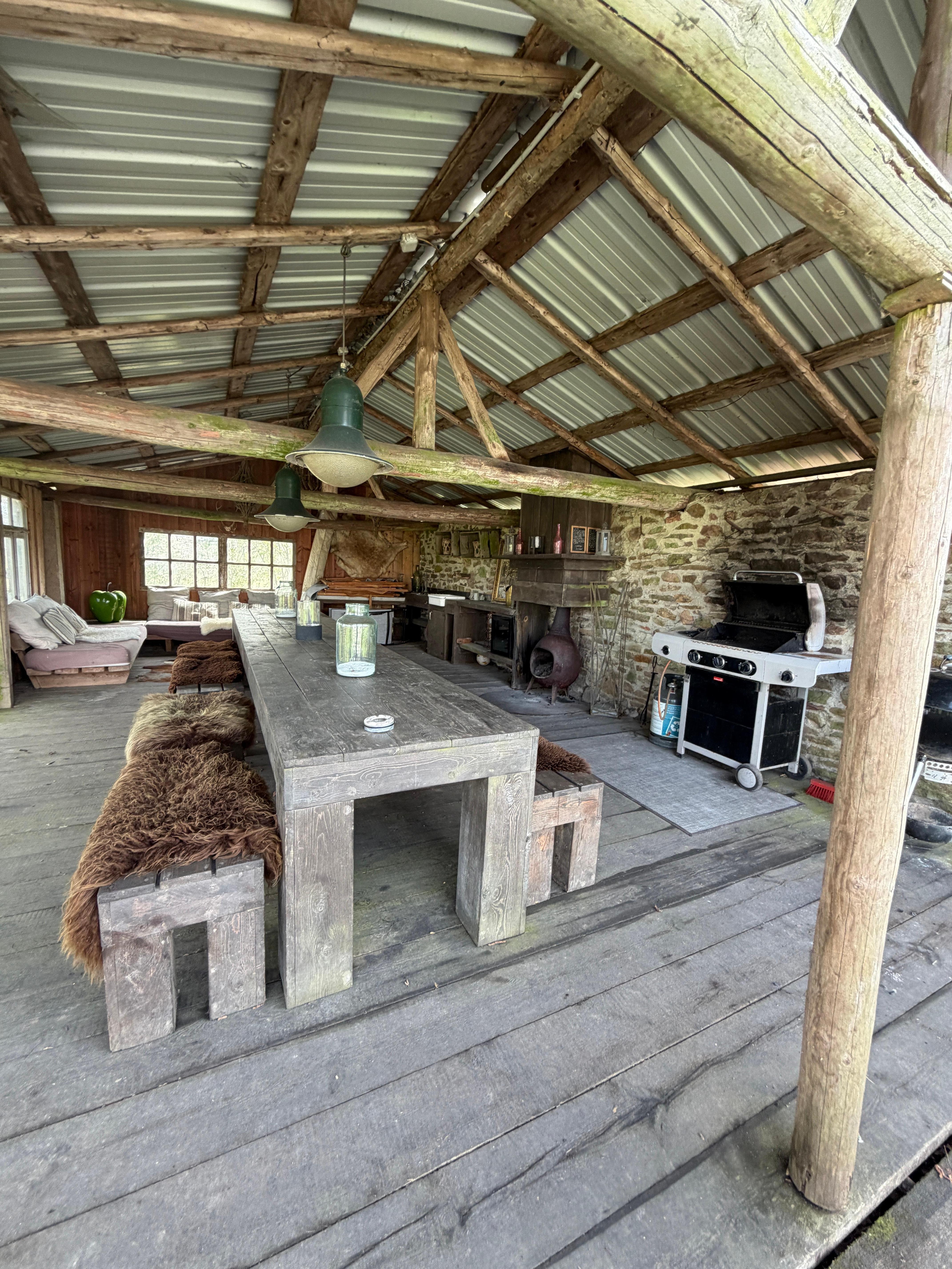A beautiful place and great accommodation with attention to detail. It hit each of us in terms of taste. Lots of space and good opportunities to stay outside. Covered seating with gas grill. Inside there are 2 fireplaces. We used it in the living room and it was super cozy. We were there with 14 adults. Just arrive and enjoy. Very nice contact. Nice neighbors. Nice village surrounded by a wonderful landscape. nice, nice, nice :-) we were flashed by the ardennes...
