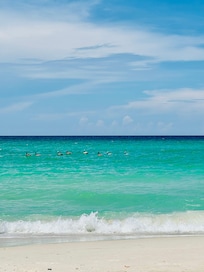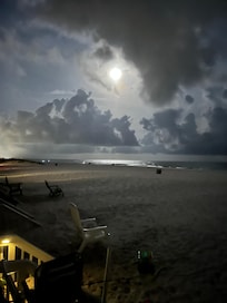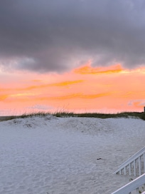 Step off the porch into the soft powdery sand and hear it squeak between your toes. Fall asleep to the sound of waves crashing under the moonlight. Miles of unrestricted walking on the beach. There are no high rises on this end of the beach.