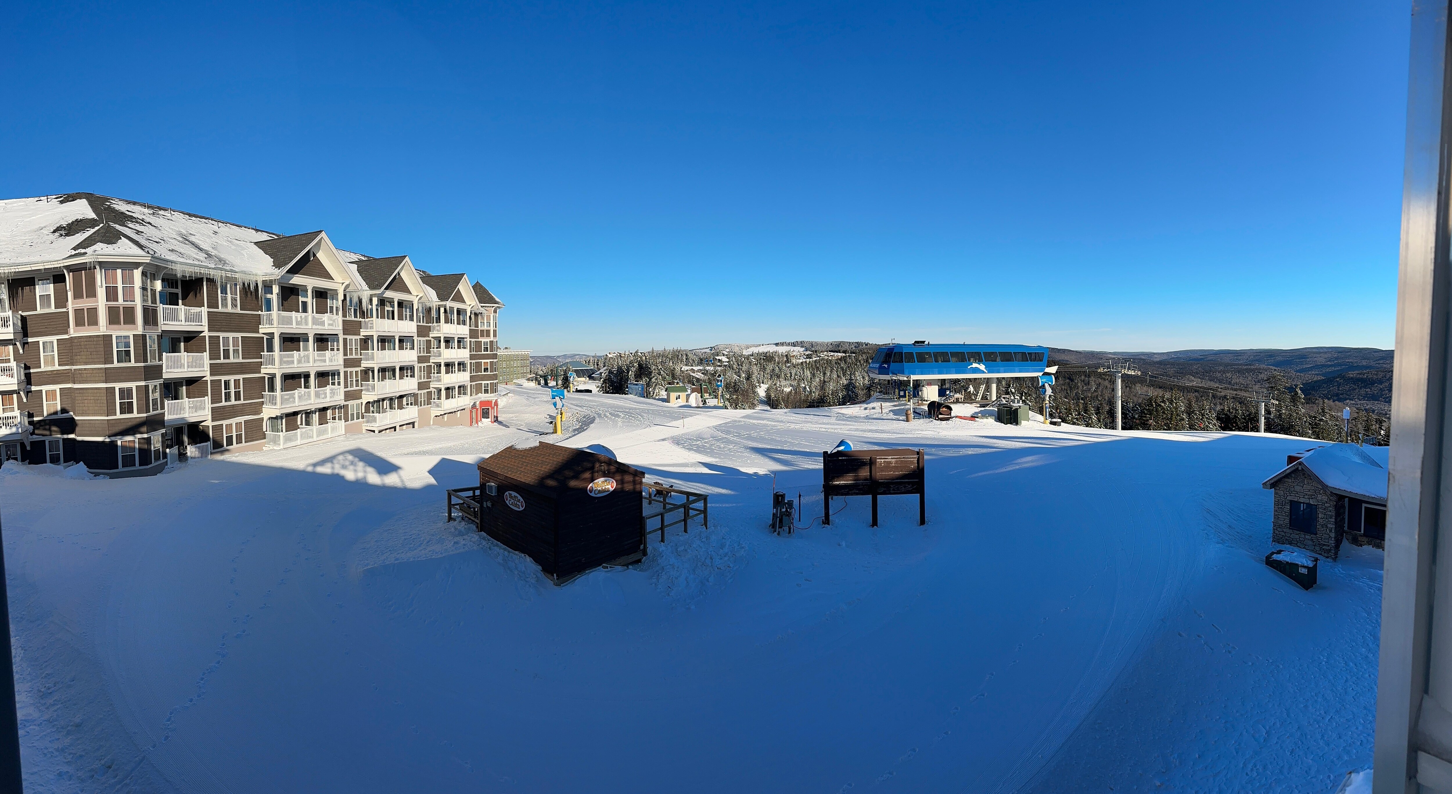 Nice condo with a wonderful view. One of the top locations to stay on the mountain. Very convenient to everything and most of all the slopes and lifts.
