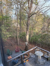 I fell in love with this the first time I saw it, driving up there were several deer in the next door lot. Upon walking in, I knew this was special. There is an adorable swing on the front porch, and the beautiful and peaceful screened in porch. Breathe......