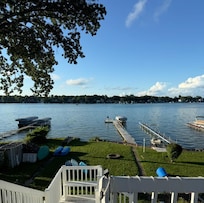 Sleeps 6! Paradise awaits at this Lake front home, only 12 miles to Notre Dame, on a 369 acre all sports Eagle Lake in Edwardsburg MI. Wake up to beautiful sunrise lake views in the large master bedroom with a queen size bed that sleeps 2 & offers a seating area with full couch. Upstairs offers a second room with 2 sets of bunk beds. This home offers a 16' x 24' raised deck with beautiful lake views on all three sides for amazing sunrise rise and sunset views! Enjoy the fire pit down at the waters edge. Gas grill provided. One of the best pier fishing spots on the lake. Owners keep their boat on lift station but there is also plenty of dock space for your boat too! Don't worry about under packing since there is a full size washer and dryer for your convenience. Rental includes a 5 person paddle boat, 3 kayaks, and Lily pad. Weekly & short term rentals JUNE thru SEPTEMBER. Monthly specials rentals October-Mid May.