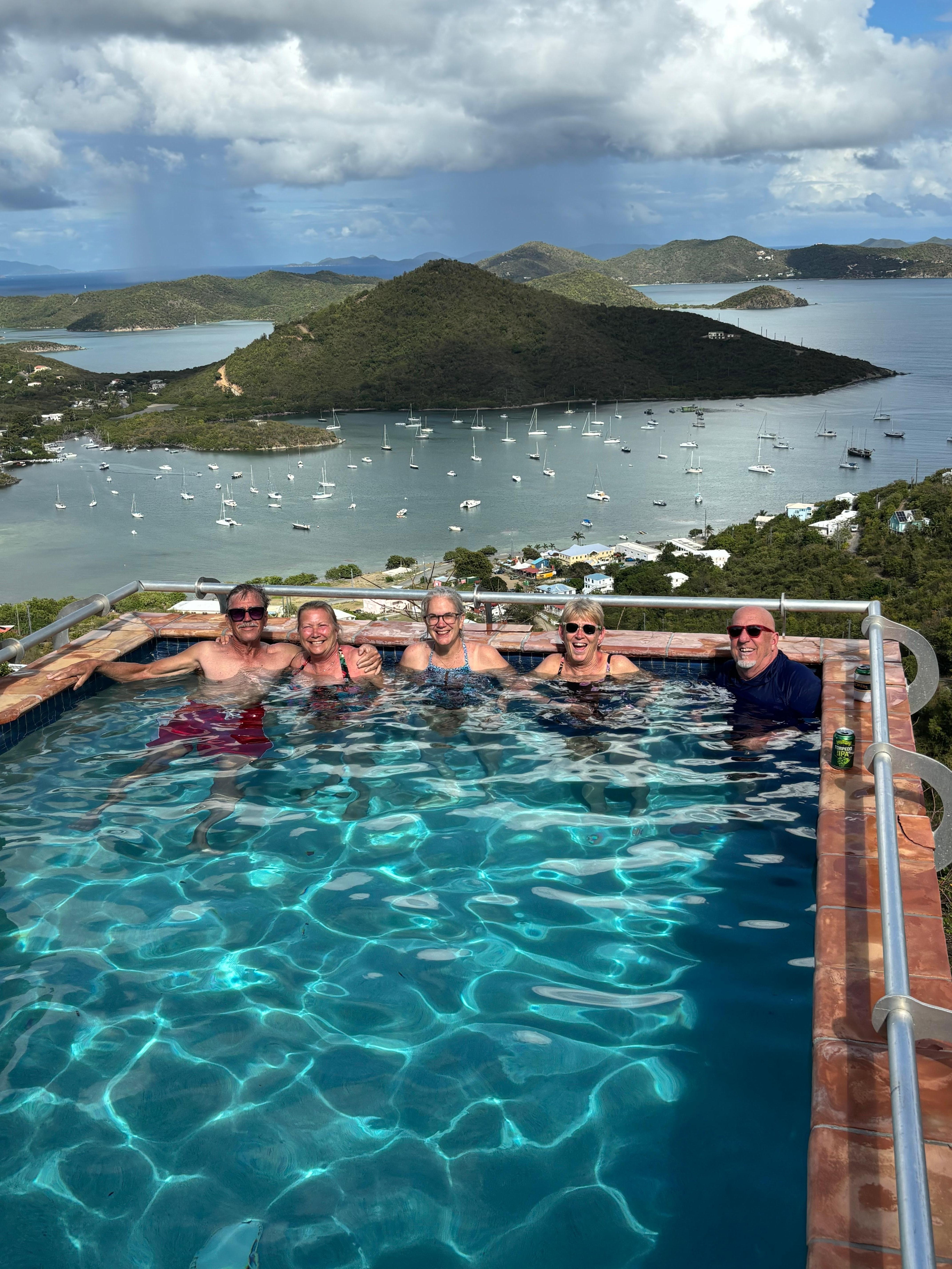 We have a killer view! On a clear day you can see Virgin Gorda. The views of the topography and water, clouds and blue sky are breath taking. We get wonderful sun and moon rises. The Villa is also brand new, solidly built, tastefully decorated with a lot of rich tropical wood. And the pool is a definite plus- hard to keep the kids out of it!