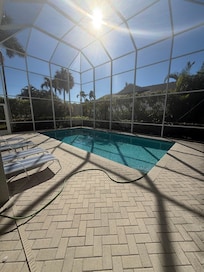 Welcome to beautiful Marco Island. This is a 3 bedroom, 2 bathroom Florida-style home which sleeps up to 6 people. After spending time at the beach or out on the water, come home to relax in the enclosed, covered lanai, which has a large heated pool, dining area, and living area with outdoor flat screen TV. This home has beach chairs, a beach wagon, bikes, ping-pong, and corn hole. Marco Island is truly paradise.