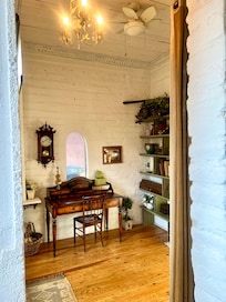 La deuxiÚme suite principale avec lit king size a sa propre entrée hors de l'allée et est séparée par la buanderie de la maison principale. Cette chambre de style victorien et sud-ouest est parfaite pour l'intimité et la solitude. Elle possÚde sa propre salle de bain et sa douche en tÎle ondulée. La chambre d'amis de la maison principale dispose d'un matelas de luxe queen-size avec penderie et d'une salle de bains avec douche en tÎle ondulée.