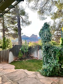 Un escalier extérieur dans la cour vous mÚne à une plate-forme d'observation pour admirer les panoramas de Sedona et le célÚbre rocher Snoopy. Les douces brises de Sedona, la détente sur un confortable mobilier de jardin avec un verre de vin ou les regards étoilés sur le ciel étoilé de Sedona vous donneront envie de rester ici pour toujours!