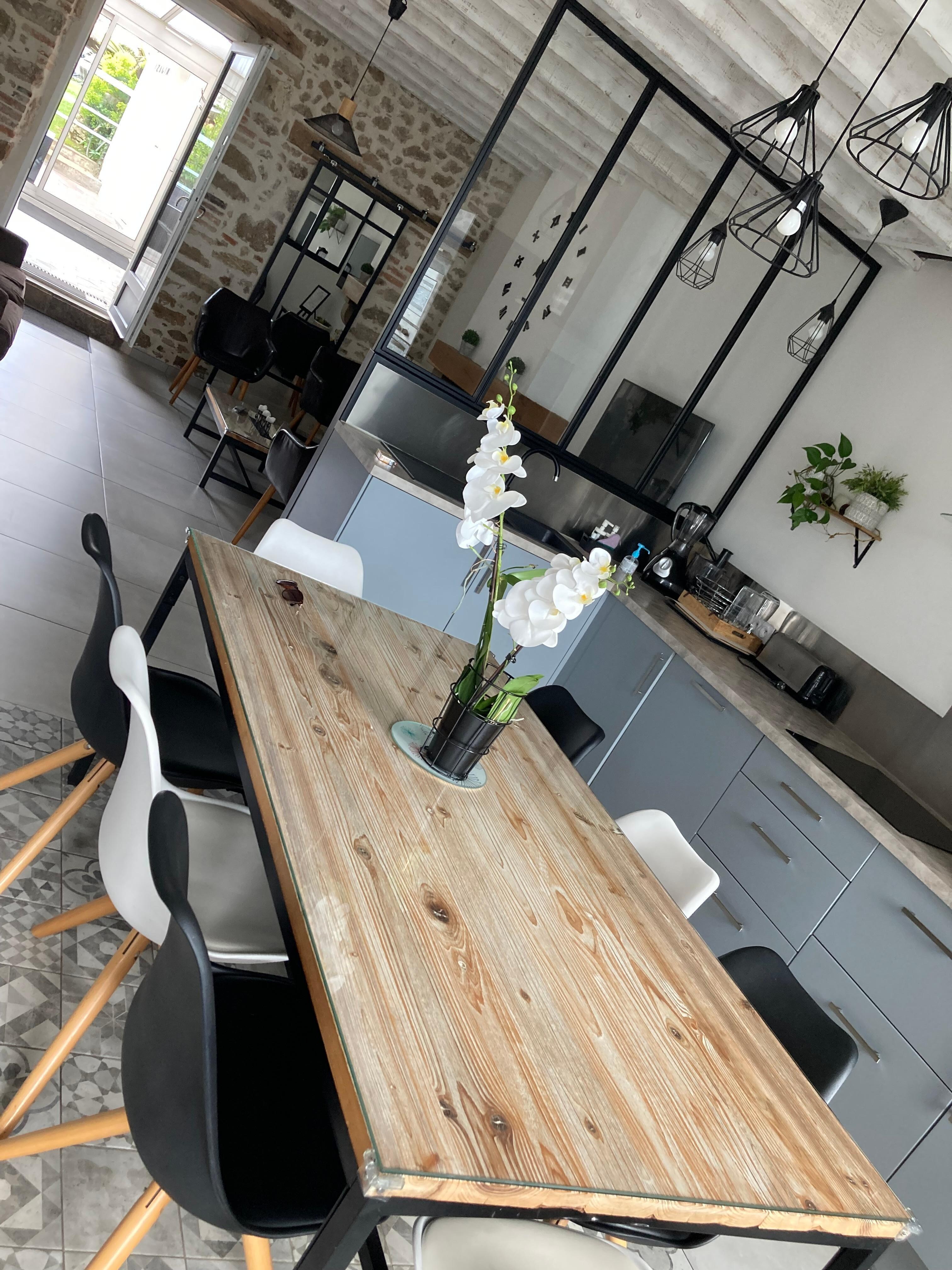 cottage including: a large living room of 45 m² with new kitchen, (dishwasher) living room with fireplace TV, Wifi (sofa bed in bed 2 people).