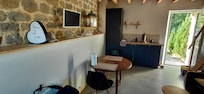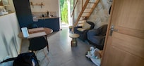 La clé se trouve dans un boîtier à code, très pratique, on a reçu les informations avant d’arrivée, bonne literie, petite cuisine avec tous le nécessaire, petit salon, avec télévision coin repas.À l’etage il y a un lit double et une baignoire, un évier pas très pratique ( surtout si on est grand).Parking, petit jardin avec une table et deux chaises, un petit plus pas négligeable. Endroit pittoresque, on retombe en enfance. Un bemol la boulangerie est trop loin, prévoir pour le petit déjeuner. Surtout avoir un véhicule c’est loin de tout.