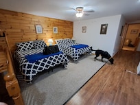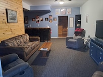 Located in Hubbard Lake, MI with private deeded access to Hubbard Lake the ~8800 acre lake is in the heart of the Huron National Forest. +/- 1200 ft2 the Knotty Pine Retreat at Hubbard Lake is on a very quiet private road (6 cabins), added as a vacation rental in 2020, it's very Fresh/New. With 2 bedrooms and a loft it sleeps 8 with 2 queen beds, 2 double beds, all lines provided. 1 full bath with towels provided. Kitchen is foodie ready, stocked with staples (coffee, flour, sugar, salt, pepper, spices), newer pots/pans, microwave, 4 burner GE gas stove, fridge, coffee pot, toaster, blender. Large Knotty Pine living room with 50" flat screen internet/smart TV, Blu-Ray player, selection of Blu Ray movies, and bar area for relaxing/card playing. Internet/ WIFI provided. There are chairs out back to enjoy the fire-pit along with a patio complete with outdoor seating and new gas grill. The lake access is 1/2 block down the road from the cabin. In addition to this private access, a private beach association is also included with use of picnic tables, pontoon raft, dock (no overnight mooring). The cabin is newly added as a rental, all new dishes/pots/linens/towels/beds.