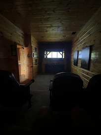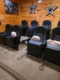The lower level leads to the game area complete with free-play arcades; board games, cards, poker chips, theater room, and many movies have been provided to entertain all ages on a 82-inch TV. There is also a master suite bedroom and full bathroom on this lower level.The bedroom is equipped with an LED TV and DVD Player.