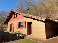 Real wooden chalet. Very nice view on the valley and the village. At 550 m of altitude. Dead end street, very quiet place. At the start of many walks. Very complete kitchen equipment. 3 beautiful rooms with bed for 2 persons, plus a small one with a sofa bed for 1 person. Large TV screen with SFR TV reception via optical fiber. Wifi. Very comfortable and well equipped living room. New furniture. Very large terrace with bbq and garden seats + relax. A car-port will shelter your vehicle. Many board games for inside and outside. Available books and magazines on the Vosges. Bakery within walking distance. Intermarché at 5 min by car. Dishwasher, washing machine and electric dryer. Electric heating and wood stove (provided). 20 min from La Bresse, the Bol d'Air center and the ski slopes.