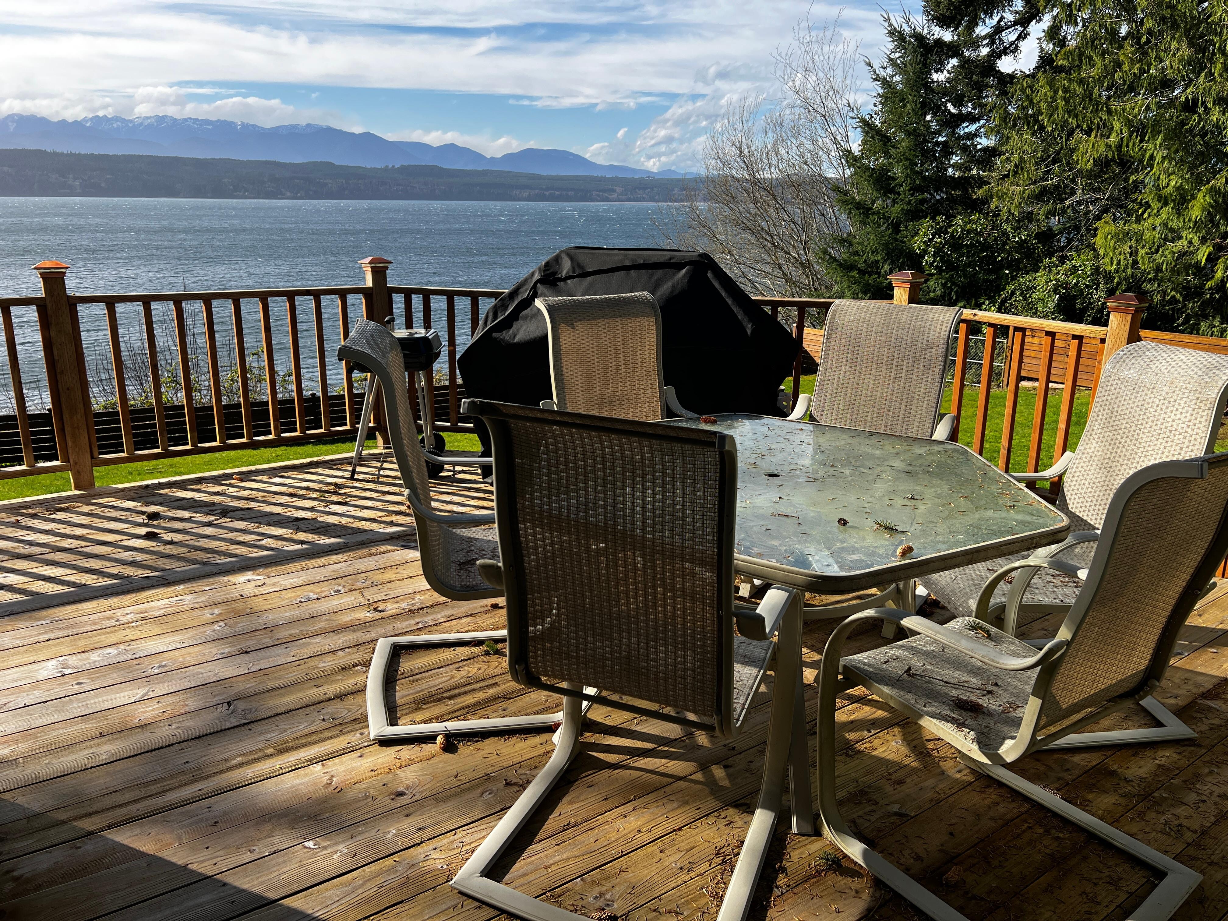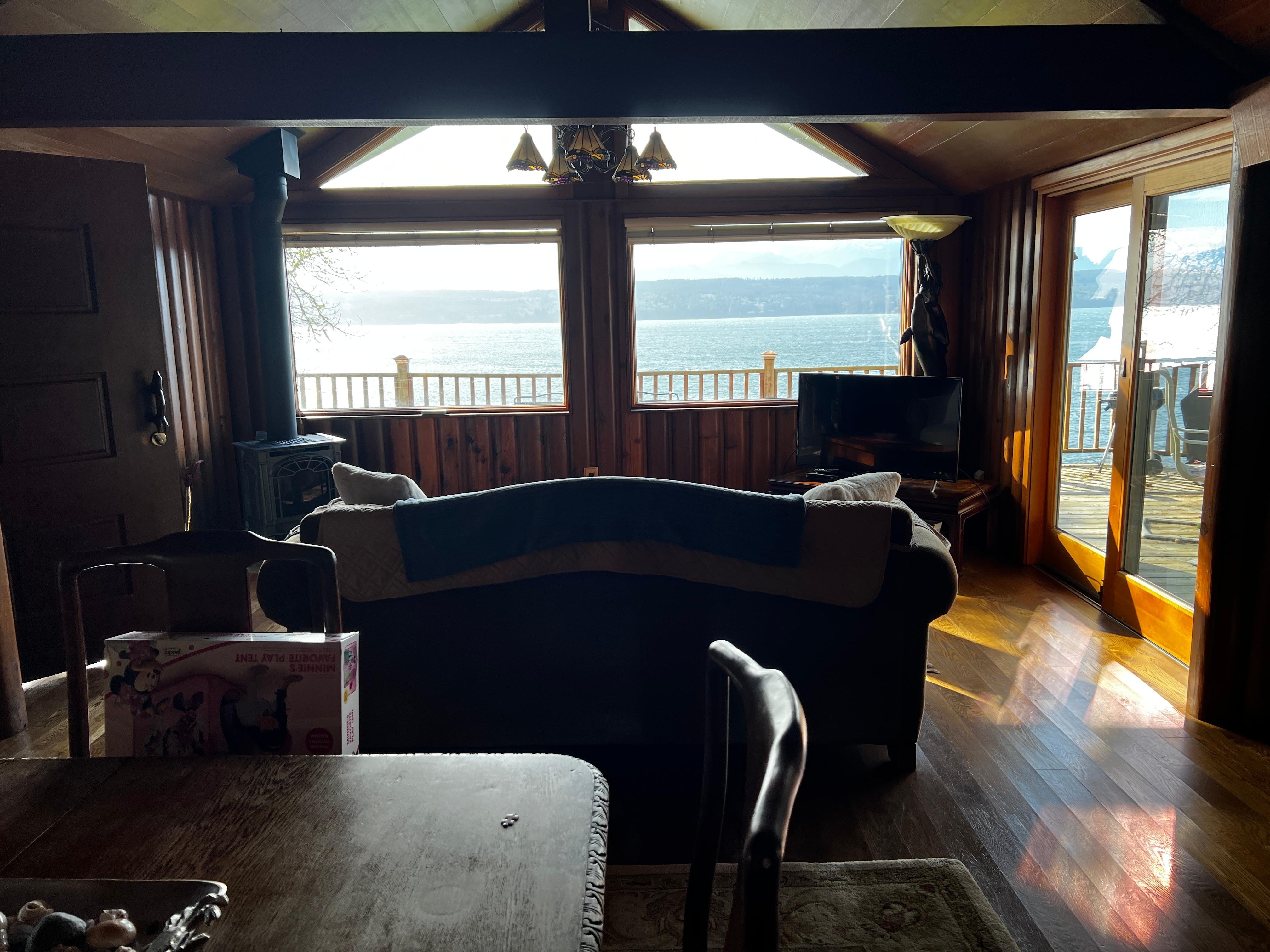 Offering unobstructed, panoramic views of Hood Canal, this cozy and spacious home is sure to make for a memorable family getaway or couples retreat. Prepare full-course meals in the well-equipped kitchen, dine together at the table for four, or head outside to the furnished deck to breathe in some of that fresh and invigorating, Pacific Northwest air. Back inside, close out your days in the cozy living area complete with a warming gas fireplace and a flatscreen TV while you catch glimpses of boats passing by out on the water.