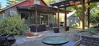 Our back yard is private, secure and fenced and is perfect for children and/or pets. There is a hot tub on the back, covered patio. A gas BBQ is located on the patio. The back yard also has a portable fire pit. Firewood supplied.