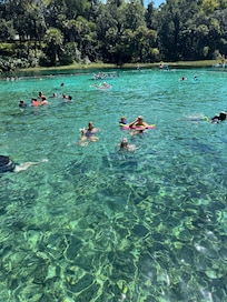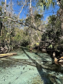 Spacious, (3200 sq ft) light-filled, comfortable home with views of the Rainbow River from almost every room. This is the ideal river location with a popular spring for divers and snorkelers just in front of the house. Located upstream from the KP Hole tuber start point, this is a tranquil, peaceful spot. You can enjoy a half mile float to the KP hole with a short walk home, or kayak/tube the entire length to Swampy’s. The head springs is an easy 0.7 mile kayak trip upstream. Only 17 miles to World Equestrian Center and Crystal River.