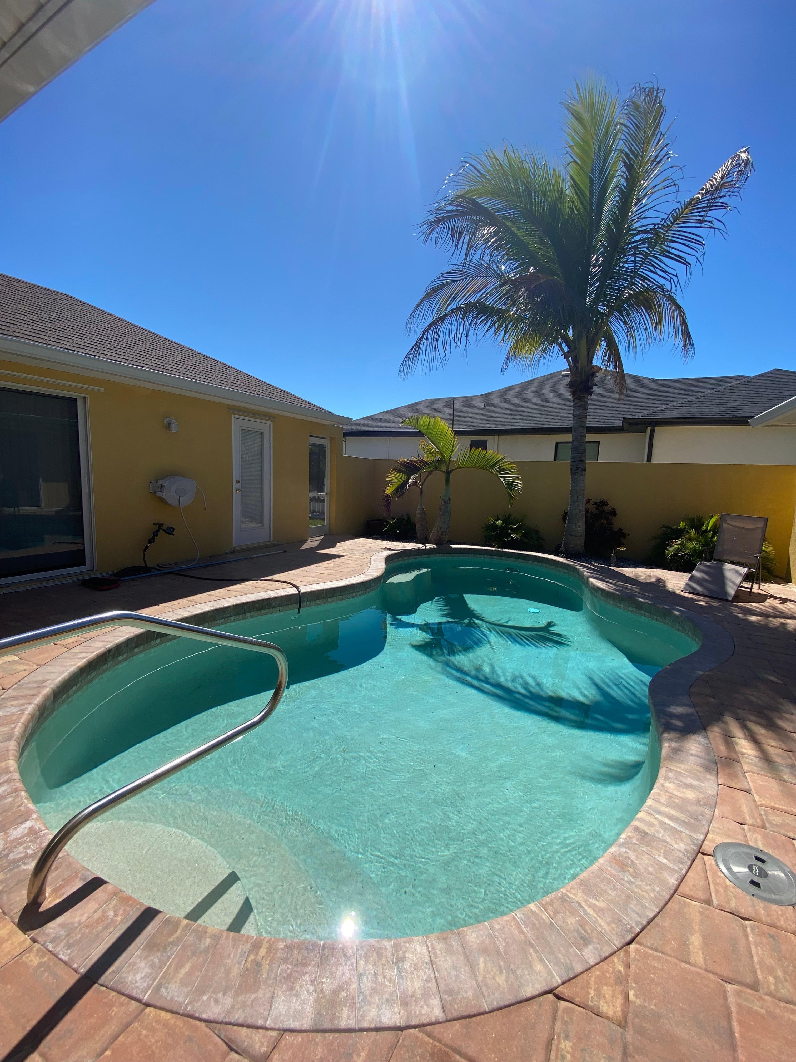 We stayed here for a month Feb 21-March 21 prime gorgeous weather! This beautiful home had plenty of space for us, our kids and grandkids, who had their first swimming lessons in the pool here. The beautifully landscaped pool in a private courtyard was one of our favorite features of this home. Three queen beds, a king master suite plus two cribs provided plenty of sleep options. We enjoyed dining al fresco on the patio. Cape Coral is a large city with lots of options for dining and entertainment. It is about a 40 minute drive to Sanibel and Captiva with amazing shelling and dolphin watching. We loved doing the touristy things and were happy to come home to a super quiet and peaceful night’s sleep. Oh - all over the neighborhood are the cutest burrowing owls! The property manager was extremely responsive. This home is truly 10/10 and we highly recommend it.