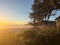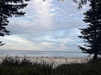 A beach getaway isn't just for nice weather either: on stormy nights you can be nice and toasty inside, sipping hot cocoa and listening to the rain fall outside. When there is nice weather, a door just off the living room leads to a patio with stunning ocean views, a gas grill, and fire pit.