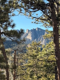 The location is so unique. Close to everything-yet so nice and private. You can walk into town in a couple of minutes and come back home to the mountain setting amidst the boulders, outcroppings, and large pines. And the views..............simply awesome. From the Mummy Range to the north, and then the Continental Divide sweeping the south and west. Wildlife frequents the property, which is a real delight. Hot tub is especially relaxing while looking at the mountains.