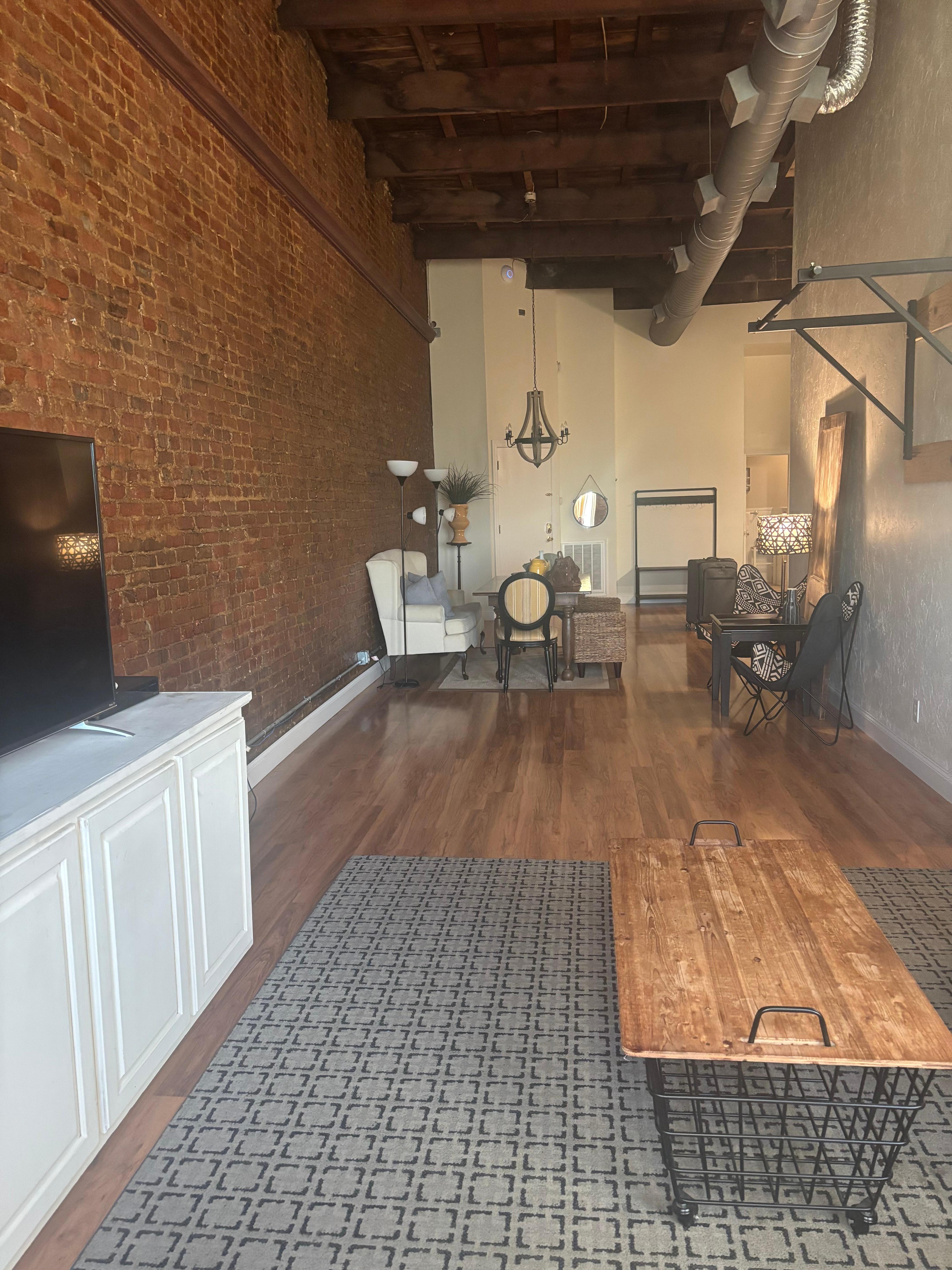 Love this loft. It was very spacious and so cozy. The design and decor is tasteful and the space has a lot of character. Even with all of that said, the location was the best part. We could quickly walk to so many neat places in the downtown area. I would absolutely recommend staying here.