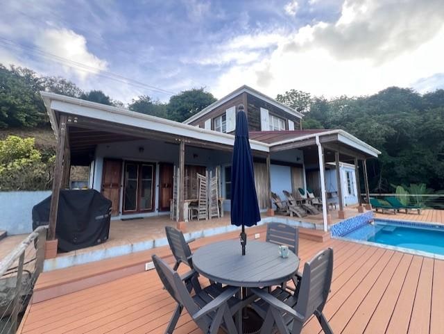 Stay at Villa Matija and enjoy the beauty and comfortable climate of the Caribbean with all the comforts of home at your fingertips. Villa Matija is very comfortable for up to four people. The house has two master suites only, one with a private deck & outdoor shower, the other with direct access to the villa's porch, deck & plunge pool. The downstairs bedroom can be set up with a king size bed or two twins. This makes Villa Matija ideal for two couples or a family of four. A modern kitchen and home theatre/living room with a 55" TV make it a great place to stay home and relax. Generous outdoor space flows effortlessly inside giving the feel of being outside while inside or the other way around if you prefer (great when there's a passing rain shower!)