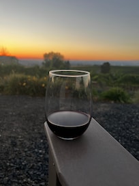 Owners Tim Gamble and Teresa Spellman Gamble are lifelong Washington residents and are proud to own two special Red Mountain vineyards and the Retreat home. The vineyard where the Retreat home is situated is a young but established European-inspired vineyard of just under 5 acres that produces 15-20 tons of quality fruit each year: Cabernet Sauvignon, Cabernet Franc, Petite Sirah, Petit Verdot, and Mourvedre have been harvested from this vineyard, and new varietal grafting is currently taking place. The second Tinte Cellars vineyard is located in the heart of Red Mountain (former E&E Shaw Vineyards), directly east of Ciel du Cheval. That vineyard is planted with just over 12 acres of Cabernet Sauvignon, Merlot, and Cabernet Franc.
