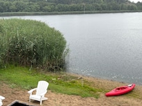 bright and beautiful lakefront house in a private beach resort. The house is located on small lake inside the resort and sleeps 16-17.. The resort's private Lake Michigan beachfront is a short 5 minute walk away. Year round there is always something to enjoy here....morning coffee on the porch watching the sunrise, a leisurely sunset walk on the dunes, long summer days of sun and fun, area football games in the fall, antiqueing, wonderful area restauraunts, sipping hot cocoa by the fireplace as the snow falls outside, casino gambling, family reunions, girlfriend getaways, area wineries, watching the seasons change and the beauty each one brings. The open floor plan is great for groups but there are plenty of quiet corners to curl up with a book or catch a catnap. No smoking.* No pets/No visiting pets.*( No proms). More photos upon request.** Weekly rentals only during summer season.**