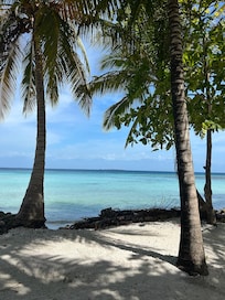 Cook dinner on either the large outside gas grill or the Green Egg charcoal grill and enjoy a local drink while relaxing under the fans on the large covered patios just steps from the ocean.
