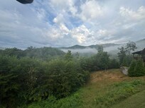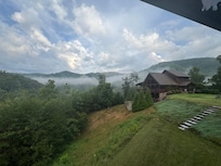 The lower level has yet another living area with a 55" 4K Ultra TV overlooking the mountain and opening out to the bottom decks of the cabin. The rec/living room has a pool table, foosball table and granite wet bar, along with a wall plate HDMI plug in for hooking up gaming devices.