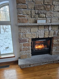 Cathedral ceilings & stone gas fireplace