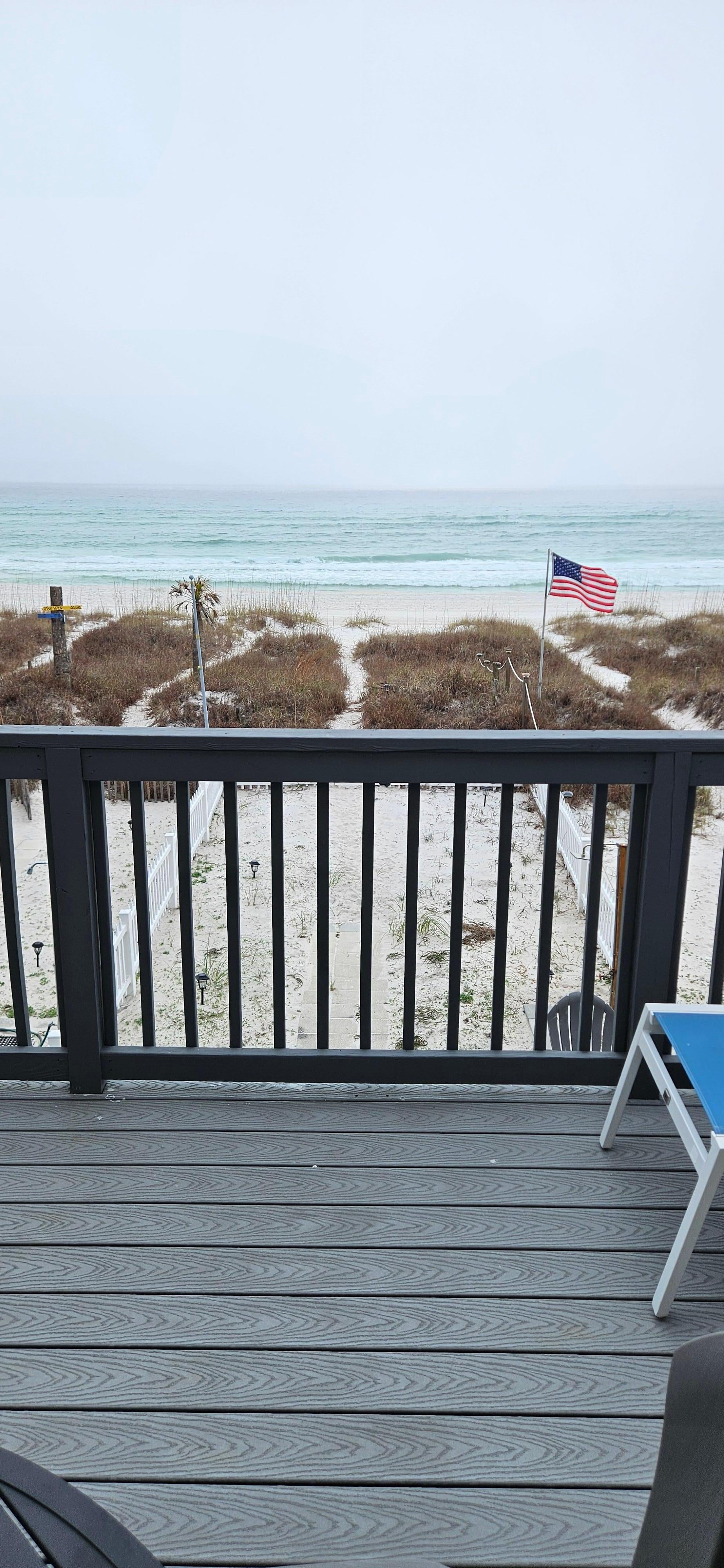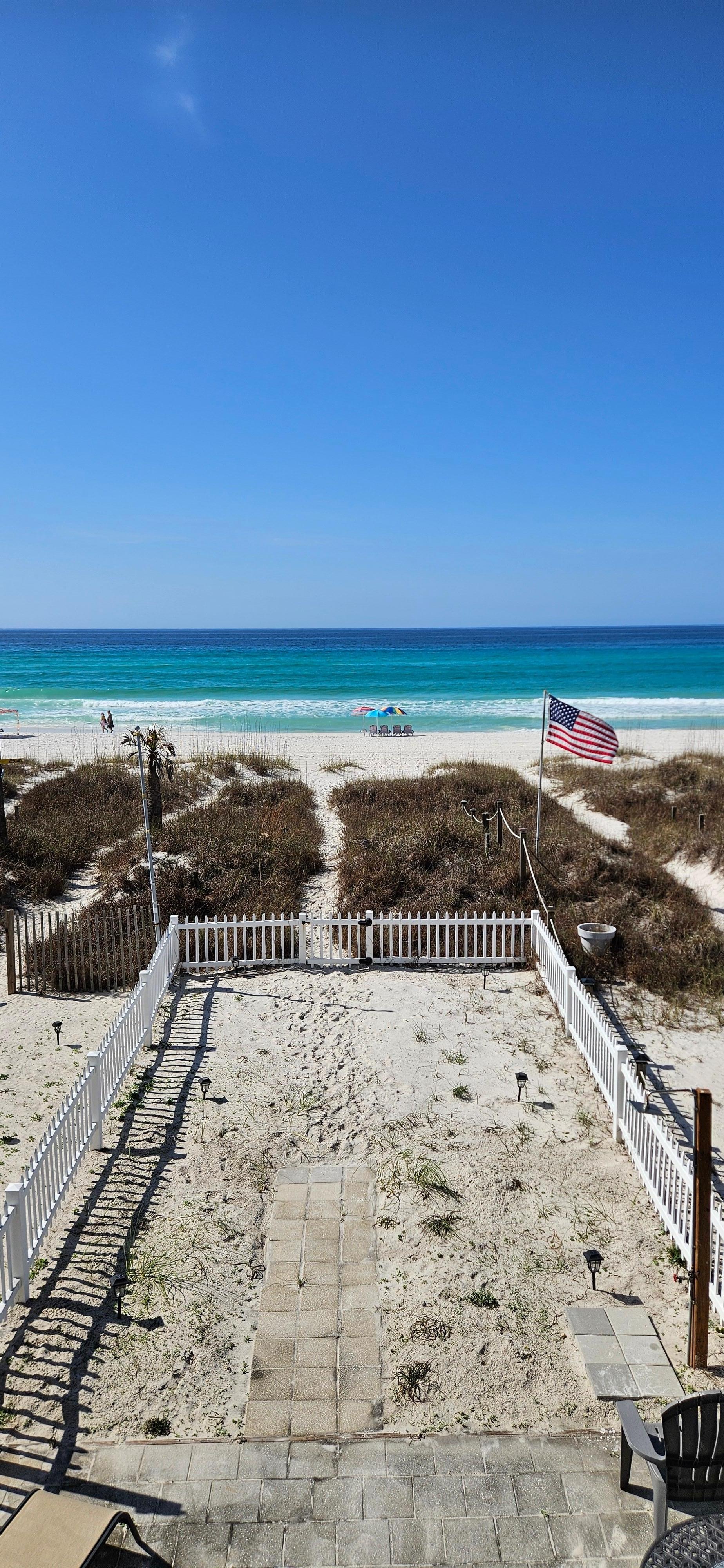 Enjoy your time away with spectacular views of the Gulf Front at our three-level direct beachfront townhome. Whether you sit on the first level deck or the porch on the ground level, dolphin spotting is a game you can all play. Or sink your toes in the sand steps away...