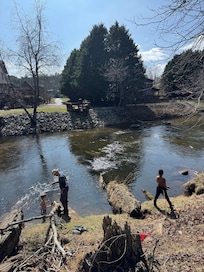 Bring your fishing pole! The BEST fishing (catch and release), tubing & kayaking section of the River. ALL WOOD Interior w/Lots of Windows to Soak in the Best River & Mountain Views in ALL DIRECTIONS. Civilized Community with Paved Roads & Driveway.