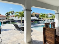 Our home has a beautiful dock great for fishing. It also has a great view of the fireworks from Marco Marriott during the 4th of July. Occasionally you can catch a glimpse of dolphins along the canal from the home.